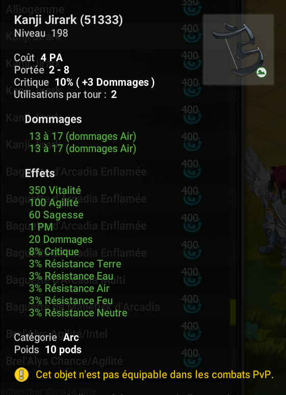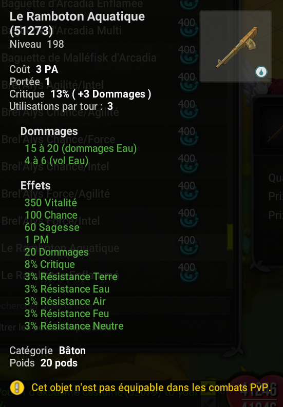 - Les conditions d'équipement PA & PM sur les items à conditions sont réactivées.